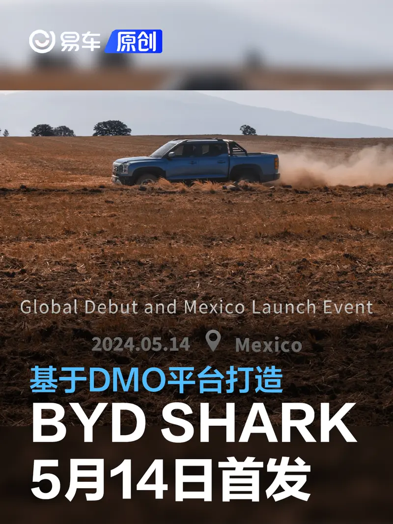 易车讯 5月7日,比亚迪汽车官方宣布BYD SHARK将于5月14日在墨西哥迎来全球首发。新车将搭载DMO超级混动越野平台,定位中大型新能源智能皮卡。