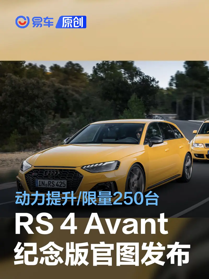 易车讯 近日,奥迪官方发布了旗下奥迪RS 4 Avant 25周年纪念版车型的官图。新车为庆祝RS 4 Avant车型推出25周年而打造,采用了独特的伊莫拉黄车漆,并针对动力系统进行了小幅升级。据悉,新车将限量发售250台,仅供欧洲市场,6月开启预定,起售价142905欧元(折合人民币112.37万元)。