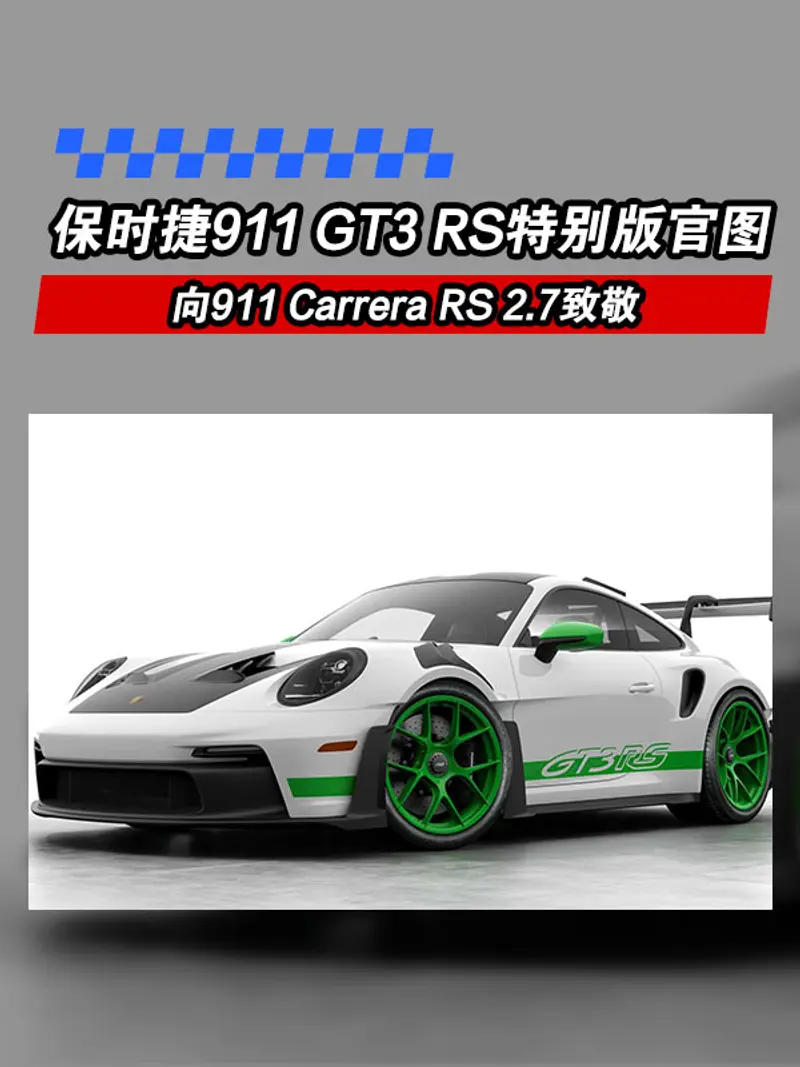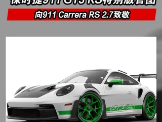 易车讯 日前,我们从相关渠道获得了 GT3 RS Tribute to Carrera RS特别版官图,新车是为了致敬911 Carrera RS 2.7车型推出50周年而打造的,拥有相似的白色和绿色涂装,新车售价约合人民币227.5万。