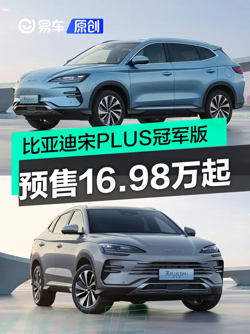 比亚迪宋PLUS冠军版开启预售 预售价16.98万元起
