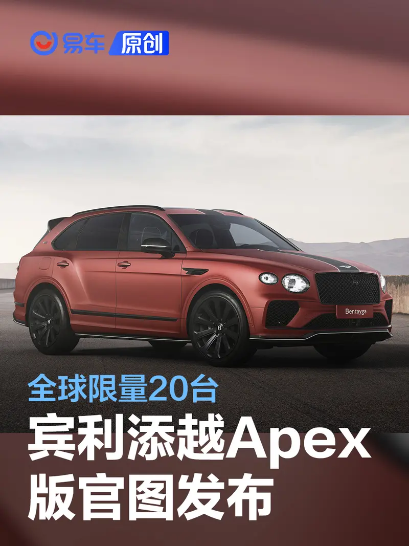 易车讯 近日,宾利官方发布了Apex版车型官图。新车是基于宾利添越S为基础升级而来,由宾利MULLINER定制部门打造,采用了定制涂装以及大量的碳纤维材质装饰。据悉,新车将全球限量20台。