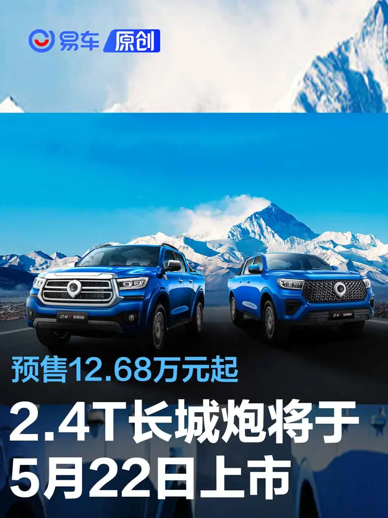 长城炮2.4T乘用炮商用炮将于5月22日上市 预售12.68万元起
