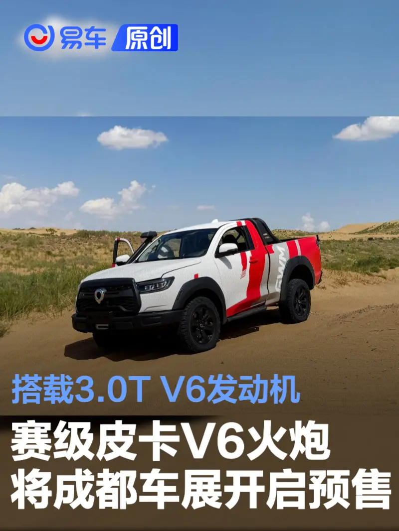 易车讯 我们从长城炮官方获悉,旗下赛级皮卡V6火炮即将在8月29日开幕的成都车展上开启预售。新车最大的亮点是搭载3.0T V6强劲动力。