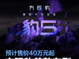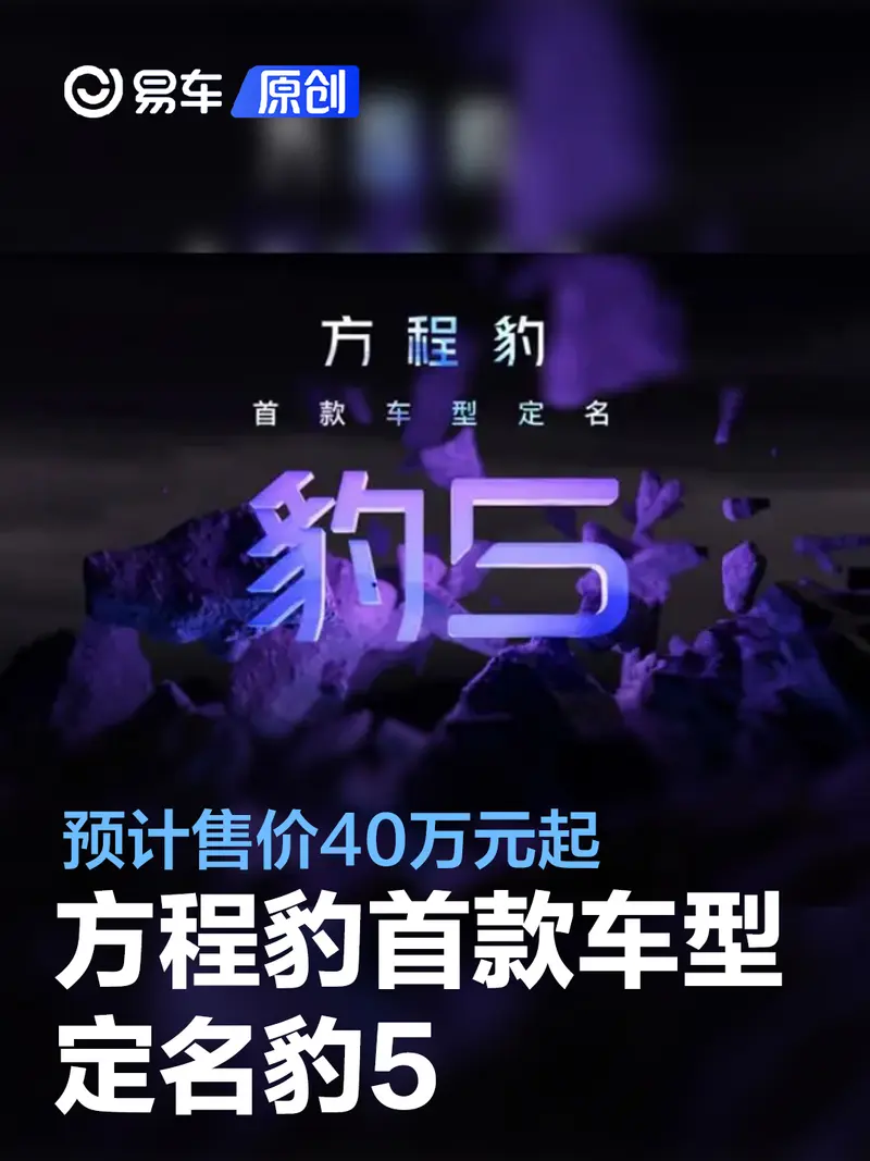 易车讯 7月4日,官方宣布方程豹汽车首款车型定名“”。据悉,豹5搭载全新混动平台DMO及云辇-p智能车身控制系统,综合续航里程1200km,百公里加速达到4秒级。预计售价区间40-60万元,并将于年内开启交付。