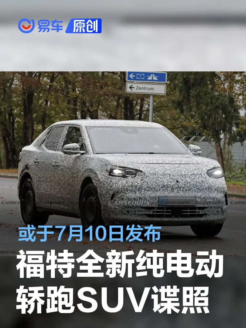 易车讯 近日,我们从外媒获取到了福特全新纯电动轿跑SUV车型的最新谍照,新车或将命名为“”,将于7月10日正式发布。值得一提的是,新车是福特使用大众MEB平台打造的一款纯电动车型,与大众ID.5互为姊妹车。