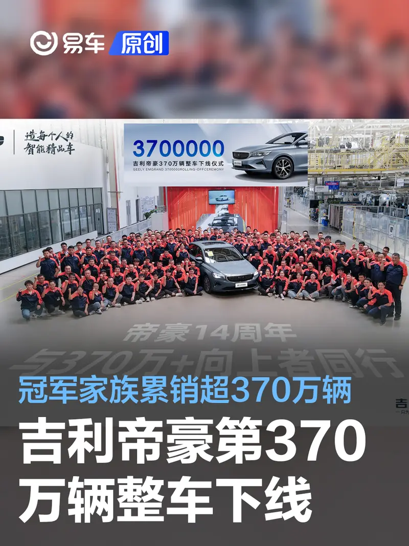 吉利帝豪第370万辆整车下线 帝豪冠军家族累计销售超370万辆
