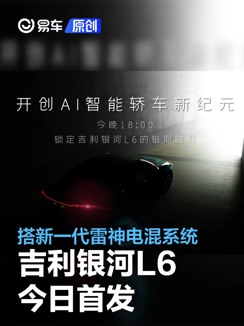 易车讯 7月6日,吉利银河L6将于今日首发。新车定位紧凑型轿车,动力搭载新一代雷神电混系统(插电混动),预计三季度上市交付。