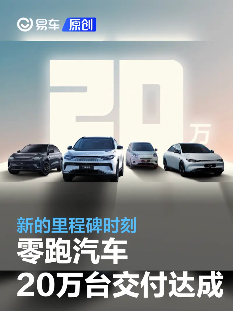 易车讯 零跑汽车官方宣布已完成20万台交付的成绩,迎来新的里程碑时刻。目前零跑在售车型有零跑C01、零跑T03、零跑C11。