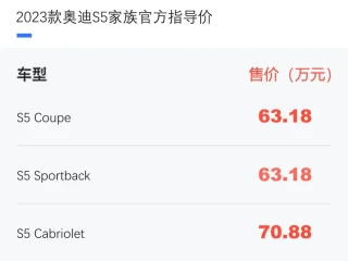 易车讯 我们从奥迪官网获悉,2023款家族现已正式上市,售价区间为63.18-70.88万元,并继续提供Coupe(两门)、 Sportback(四门))与Cabriolet(敞篷)三种车型形式以供消费者选择。