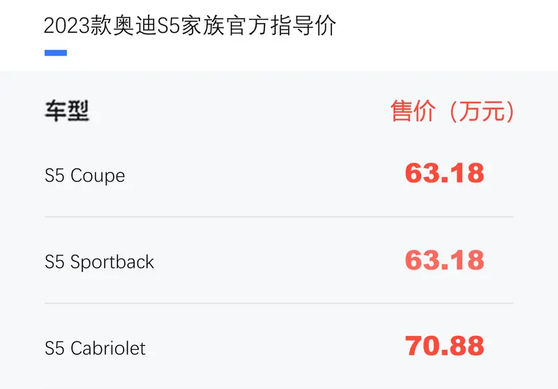 2023款奥迪S5家族上市 售63.18万元起