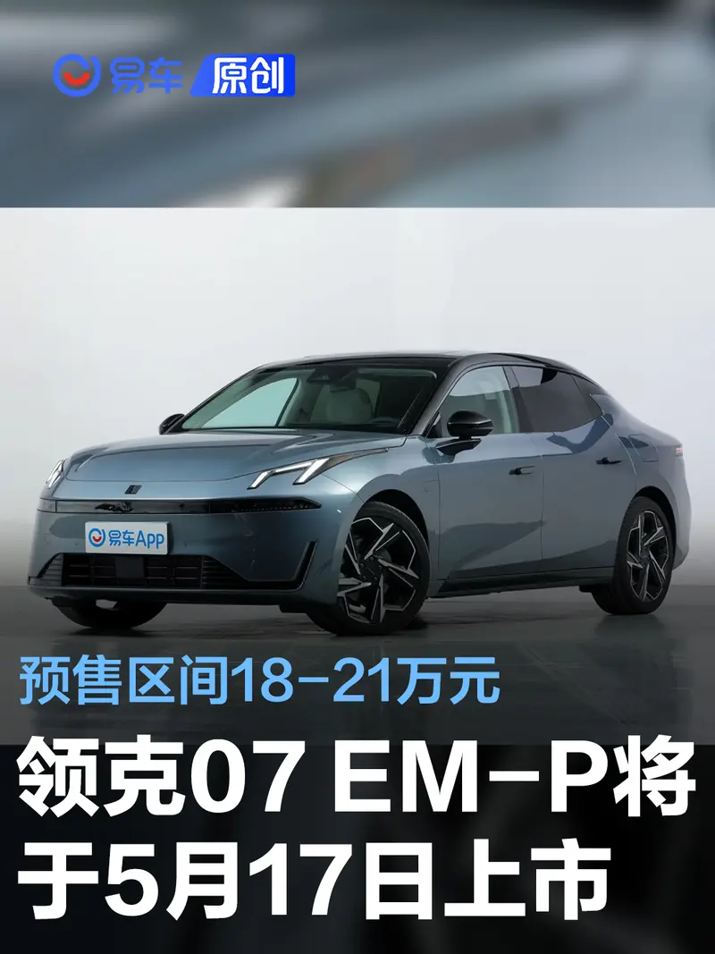 领克07 EM-P将于5月17日上市 预售区间18-21万元