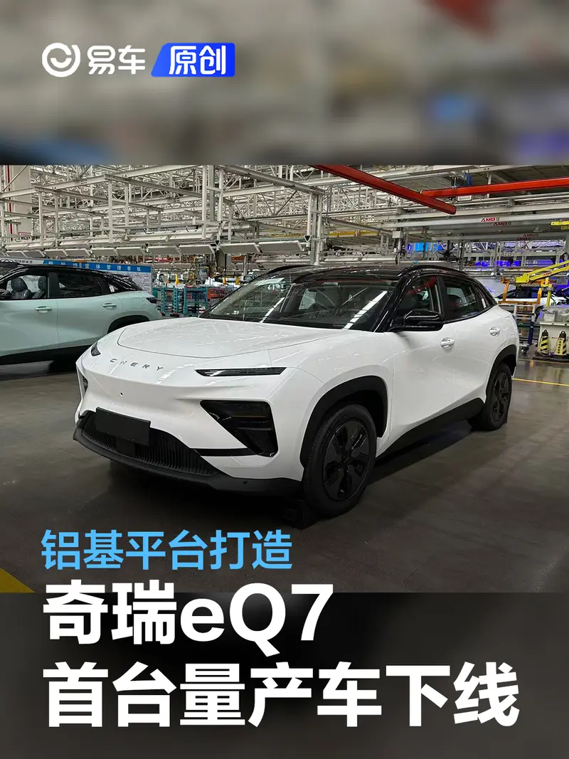 易车讯 7月12日,奇瑞eQ7首台量产车正式下线。作为奇瑞打造的纯电中型SUV,基于全新铝基平台打造的奇瑞eQ7采用后置后驱布局,主销车型续航里程达到512km。