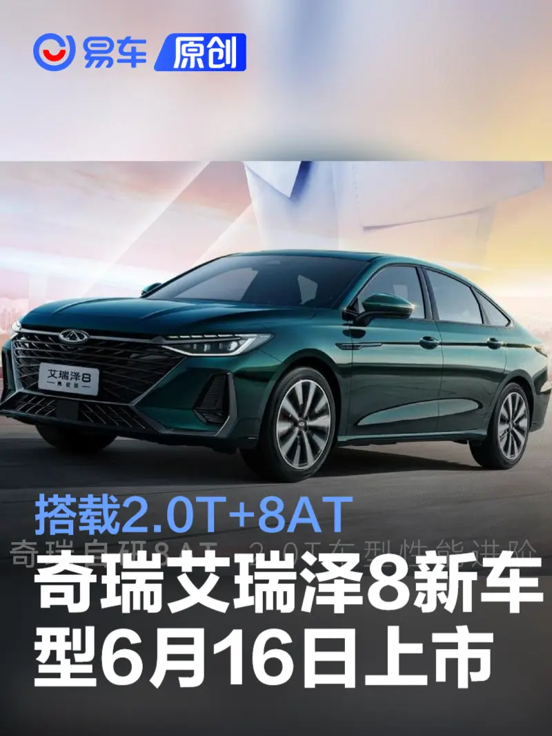 奇瑞艾瑞泽8新车型将于6月16日上市 搭载2.0T+8AT