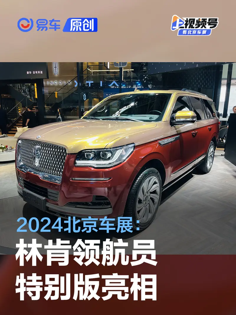 易车讯 2024北京车展上,林肯特别版亮相,新车采用金色与红色相搭配的双色车身设计,与领航员蓝银版一样,在C柱上拥有专属的典藏骑士星徽标。