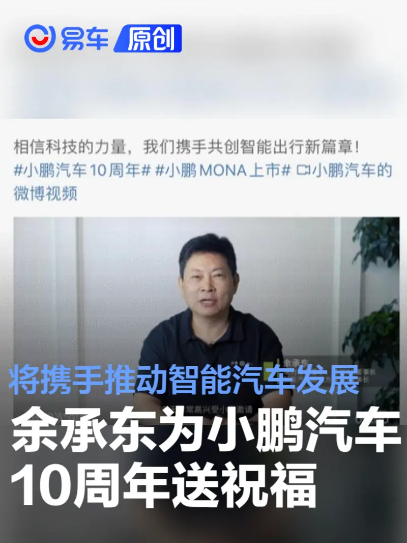 余承东为小鹏汽车10周年送祝福 将携手小鹏推动智能汽车发展