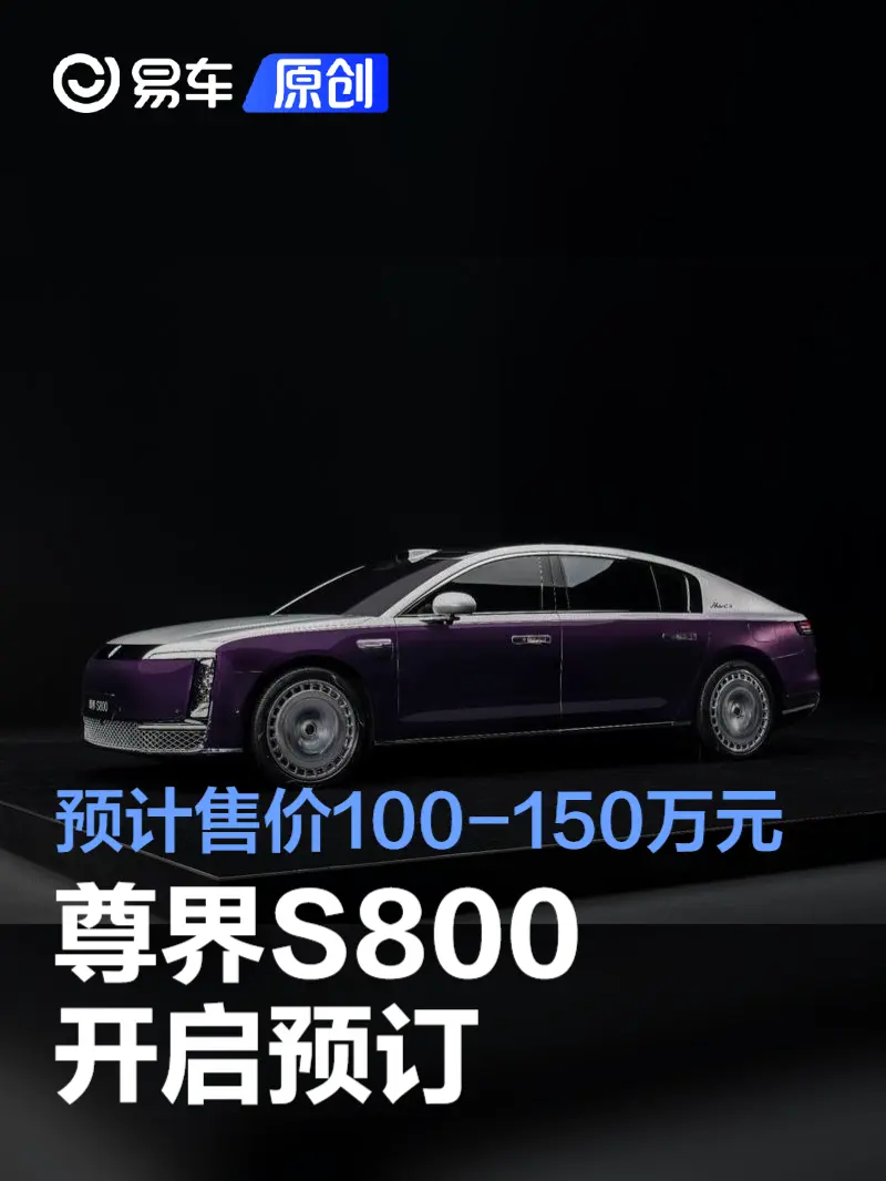 易车讯 11月26日,首款车型尊界S800正式亮相并开启预订,预计售价100-150万元,意向金20000元。